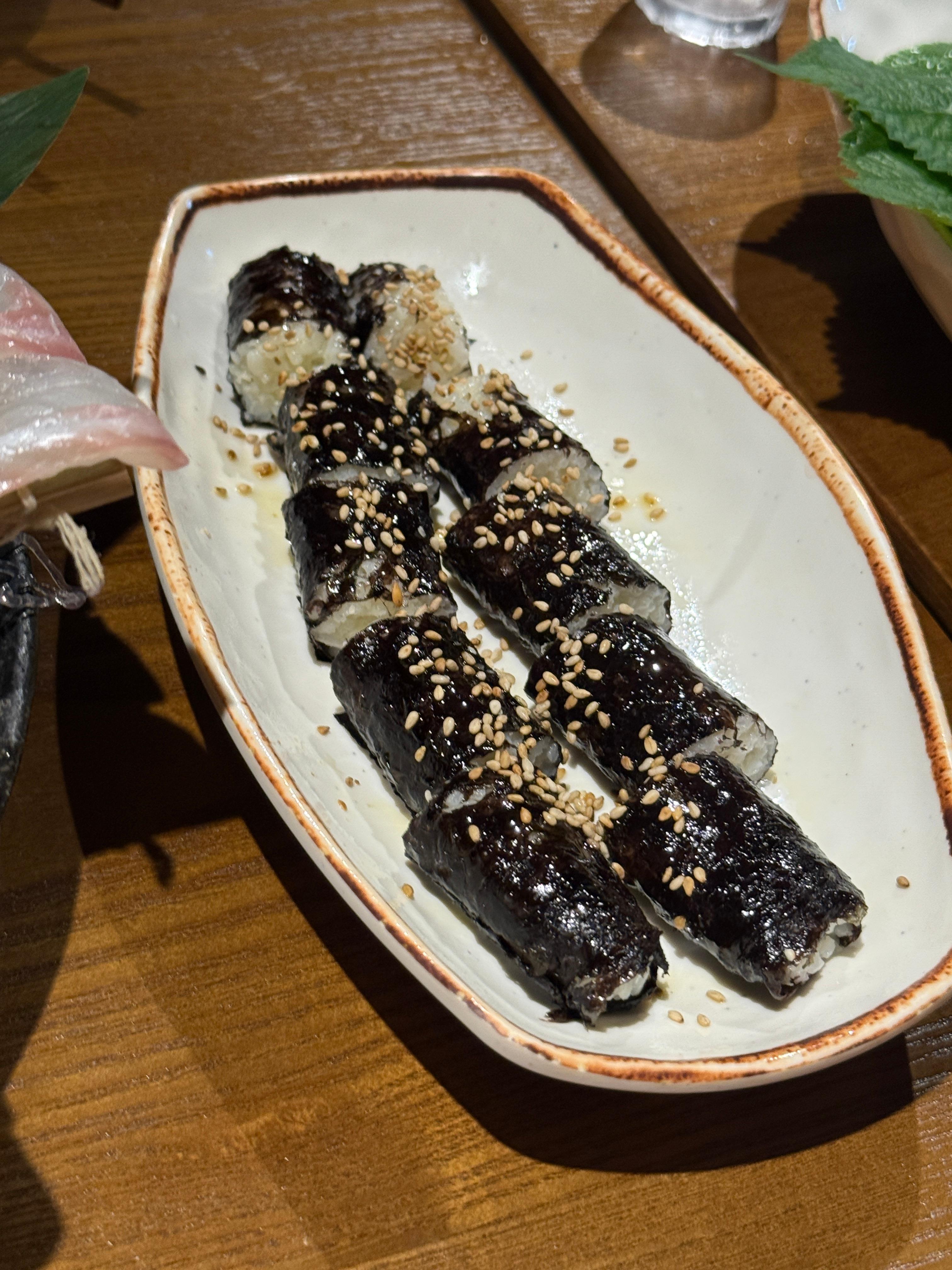 짭조름하게 간이 된 밥과 김의 조화가 숙성회와 너무 잘 어울려요.